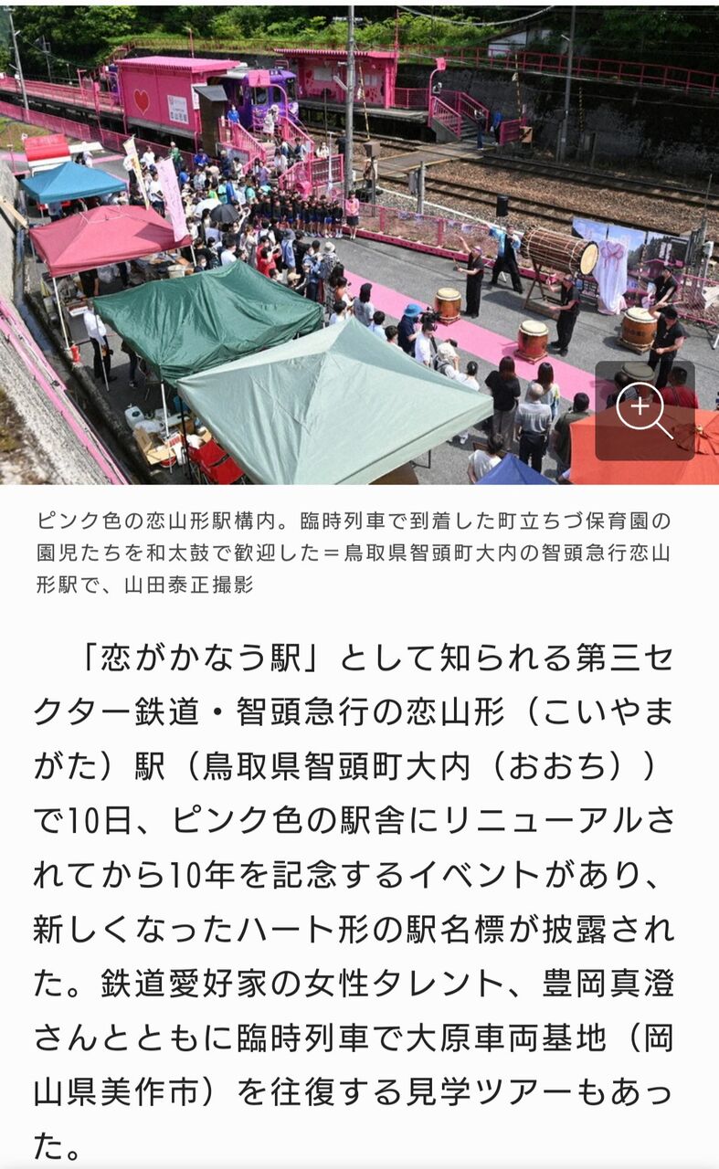 呂布は22日の投稿で、智頭急行恋山形駅(鳥取県智頭町)のホームの写真をアップ。