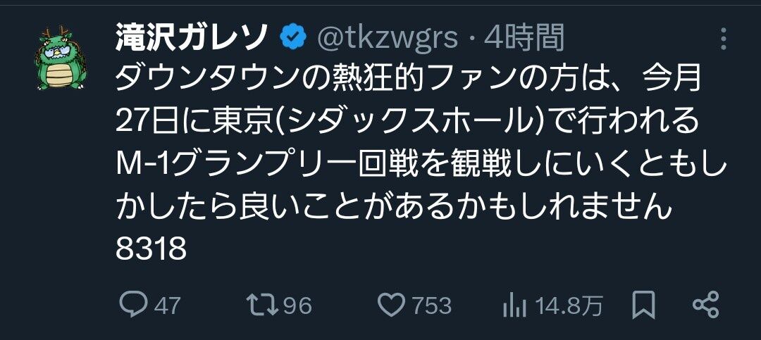 もしこれがダウンタウンでM-1から這い上がってくるとしたら(ヤラセでも)ちょっと熱いな