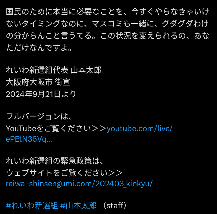 正論を言う政治家が山本しかおらん酷い人材不足