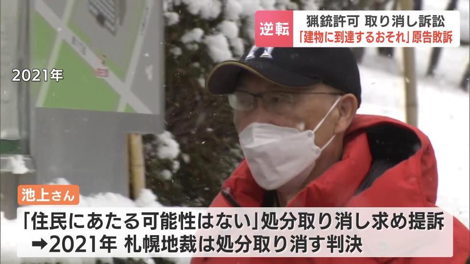 2021年12月の一審札幌地裁判決によると、池上さんは18年8月、砂川市から要請を受け、同市内の山林でクマに発砲。公安委は建物の方向に撃ったとして、鳥獣保護管理法違反などを理由に19年4月、所持許可を取り消した