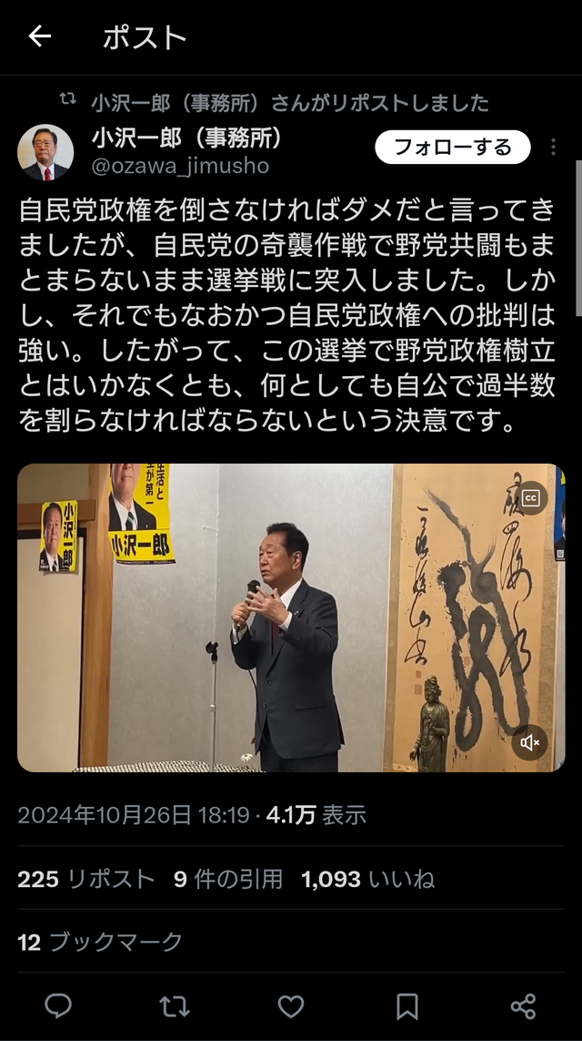 アメリカやカルトと真っ向からやり合えるのなんて小沢先生ぐらいしかいない